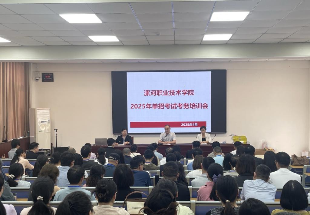 为高标准落实2024年单独招生考试组织任务,确保考试公平公正、规范有序,我校于4月20日下午组织召开单招考试专题培训会。校长薛存心、主管副校长石晓出席会议,教务处负责人娄琳、全体考务人员及监考员参会。