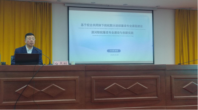 9月24日下午3点,suncitygroup太阳集团在行政楼七楼会议室举行专业建设与创新实践报告会,杭州职业技术大学白志刚教授作题为《基于校企共同体下的杭职大纺织服装专业课程建设——suncitygroup太阳集团服装专业建设与创新实践》的专题报告。学校党委委员、副校长石晓教授出席会议,报告会由教务处处长张彦鸽主持,各二级学院院长、副院长、各专业教研室主任、骨干教师参加了报告会。