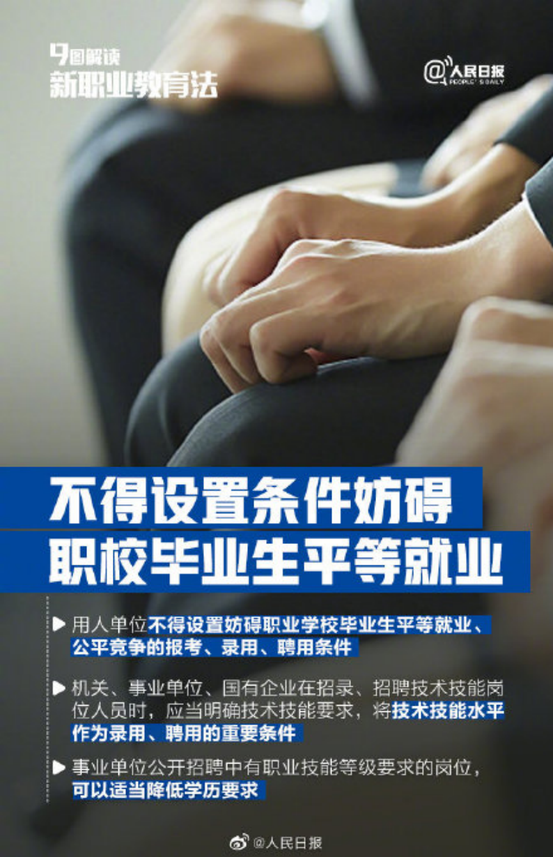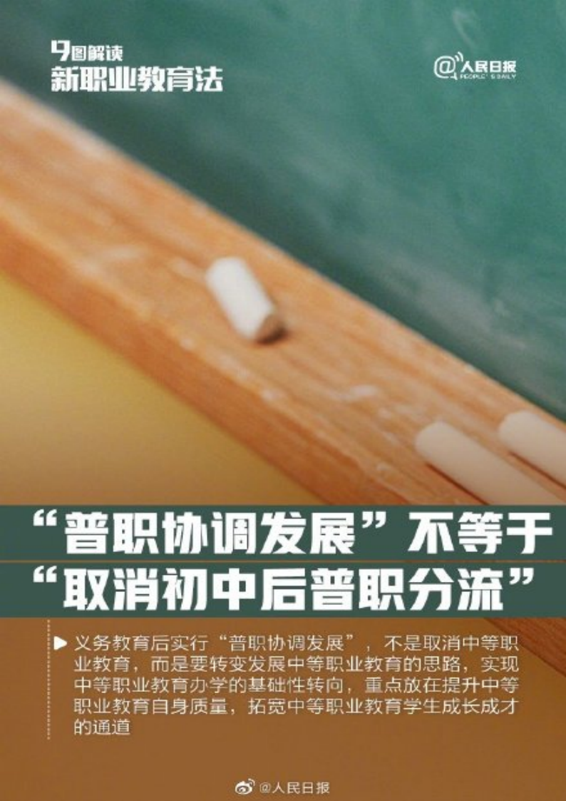 教育部政策法规司司长邓传淮在4月20日新修订《中华人民共和国职业教育法》发布会上说。职业教育法将于5月1日起正式实施,并介绍了新修订的职业教育法十大亮点。