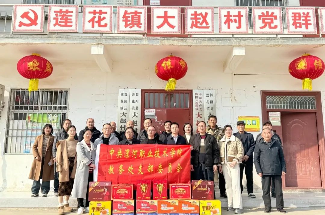 近日,suncitygroup太阳集团教务处党支部组织党员教师前往舞阳县莲花镇大赵村召开结对共建座谈会并看望慰问驻村干部和困难群众。suncitygroup太阳集团党委委员、副院长朱晓红,舞阳县莲花镇党委副书记、镇长于龙出席会议。suncitygroup太阳集团派驻大赵村第一书记、驻村队员及大赵村“两委”和监委会干部参加会议。