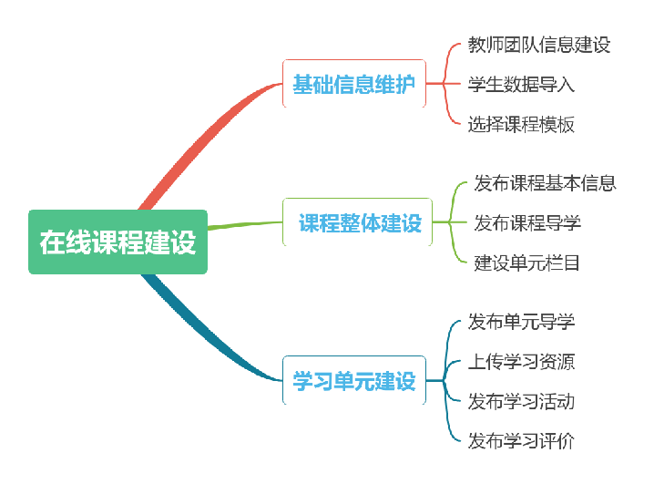 混合课程在线部分的构建包括课程基础信息、课程整体建设和学习单元建设三个环节,与混合教学设计的前期分析、课程整体设计和学习单元设计三个环节相互对应。